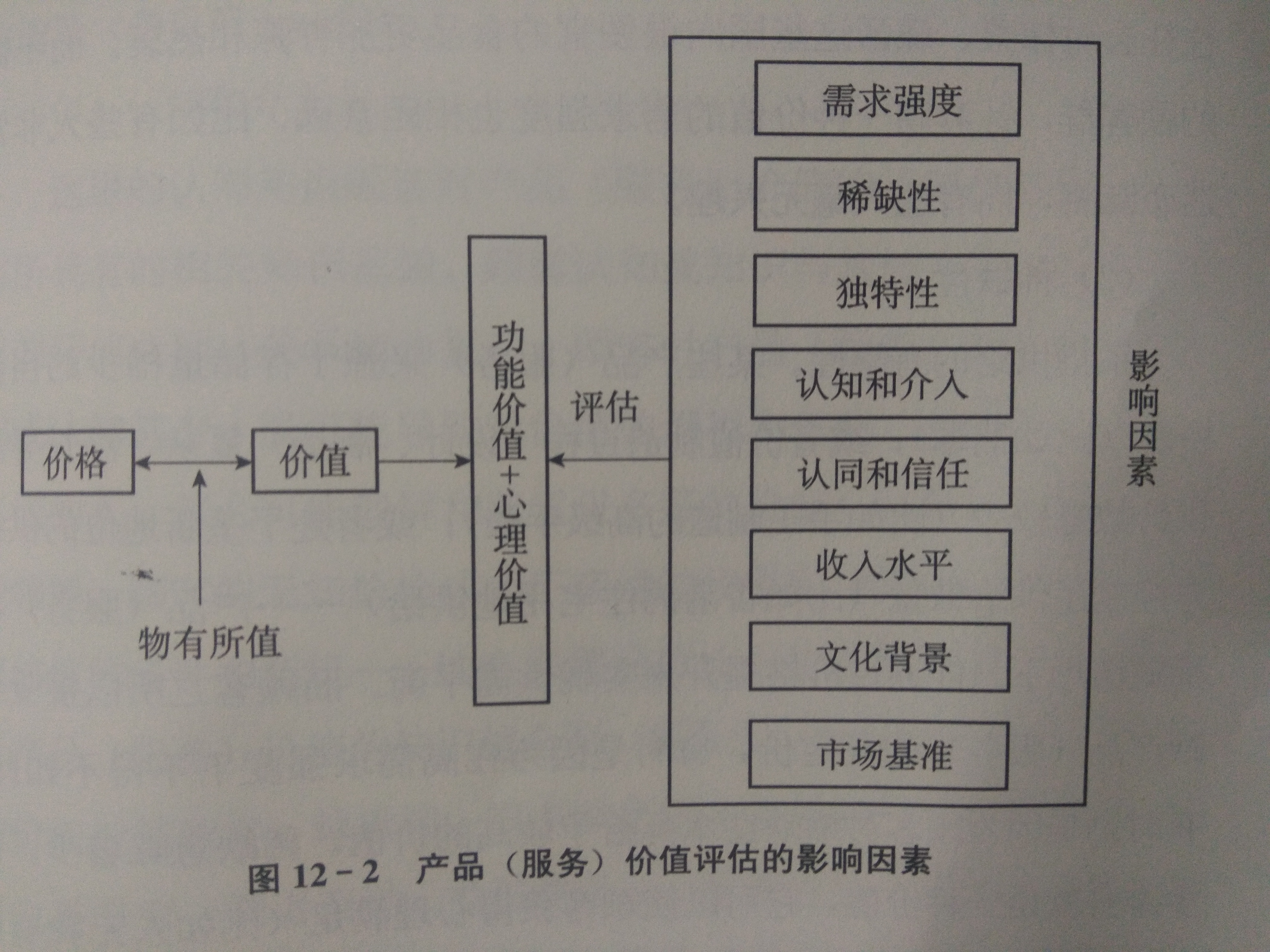 讀者朋友可能會問:顧客如何評估產(chǎn)品(服務)的價值?他們會考慮哪些變量? 他們會受哪些因素影響?下面我們一一說明(見圖12-2)。