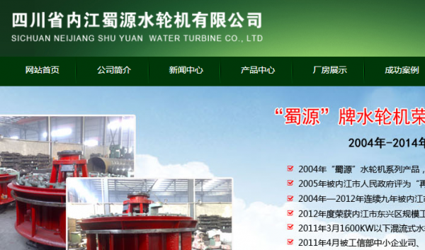 四川省內(nèi)江蜀源水輪機(jī)有限公司是原四川省國(guó)營(yíng)內(nèi)江水輪機(jī)廠破產(chǎn)后,于2001年8月重組成立,是集生產(chǎn)、銷(xiāo)售為一體的民營(yíng)經(jīng)濟(jì)實(shí)體。公司主要制造銷(xiāo)售水輪機(jī)及配套設(shè)備,造紙機(jī)械,礦山機(jī)械,食品機(jī)械,包裝機(jī)械。公司與四川省西華大學(xué)(原四川工業(yè)學(xué)院)流體機(jī)械研究所建立了長(zhǎng)期合作關(guān)系,屬中國(guó)電工工業(yè)協(xié)會(huì)會(huì)員、四川省中小型水輪發(fā)電機(jī)組定點(diǎn)生產(chǎn)企業(yè)、內(nèi)江市東興區(qū)工業(yè)規(guī)模企業(yè)。公司現(xiàn)有職工100余人,解決下崗失業(yè)人員68人,有工程技術(shù)人員46人,大部分生產(chǎn)工人都是具有專(zhuān)門(mén)特長(zhǎng)的技工。公司2004年“蜀源”水輪機(jī)系列產(chǎn)品,榮獲“中國(guó)知名發(fā)電機(jī)組十佳品牌;2005年被內(nèi)江市人民政府評(píng)為“再就業(yè)先進(jìn)企業(yè)”;2004年—2012年連續(xù)九年被內(nèi)江市東興區(qū)工商局評(píng)為“守合同重信用”企業(yè);2012年度榮獲內(nèi)江市東興區(qū)規(guī)模工業(yè)企業(yè)目標(biāo)考核“二等獎(jiǎng)”,2011年3月1600KW以下混流式水輪機(jī)被中國(guó)電器工業(yè)協(xié)會(huì)評(píng)為質(zhì)量可信產(chǎn)品;2011年4月被工信部中小企業(yè)司、四川省經(jīng)信委授予“國(guó)家中小企業(yè)扶持項(xiàng)目實(shí)施單位” ;2011年4月被四川省經(jīng)濟(jì)和信息化委員會(huì)授予—四川省“成長(zhǎng)型“中小企業(yè);2014年4月16日獲得國(guó)家知識(shí)產(chǎn)權(quán)局授予的三項(xiàng)專(zhuān)利權(quán):新型軸流式水輪機(jī)、新型貫流式水輪機(jī)、新型沖擊式水輪機(jī)。