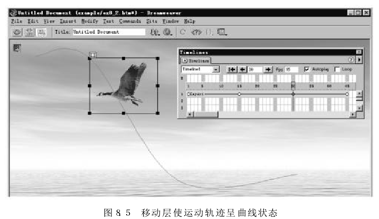 (9) 通過預(yù)覽動畫,發(fā)現(xiàn)小鳥的飛行速度太快了,可將“Fos" 中 的每秒幀數(shù)從15改為8,這樣可以降低小鳥的飛行速度。