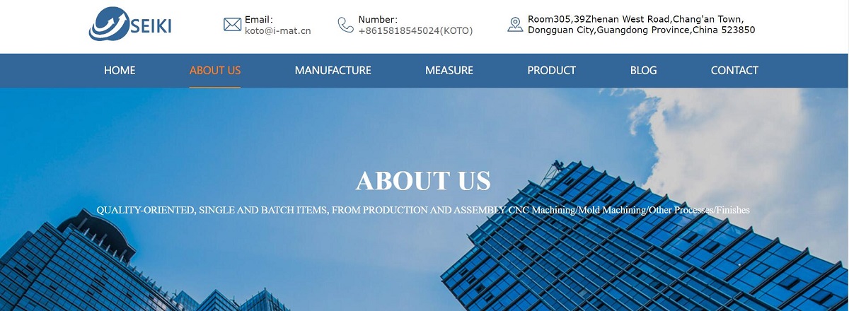 DongGuan Seiki Precision co.,ltd is is a professional engaged in mechanical parts, mold parts, resin parts and processing enterprises.Founded in 2017,the company is now located in Changan town, Dongguan city, a famous city made in China,The company has precision processing equipment and testing instruments:five axis, four axis, three axis CNC machining center, CNC lathe, wire cutting machine,grinding machineand three-dimensional, projector, et.