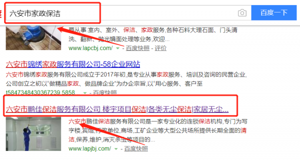 我們公司與六安市鵬佳保潔服務(wù)有限公司合作中,對這個公司所經(jīng)營的家政保潔這個行業(yè)提供了快速排名,與該公司的合作,更多的客戶讓我們公司為其提供快速排名,通過每一次合作,我們公司不斷完善自己,同時希望合作伙伴在經(jīng)營的路上越來越好。