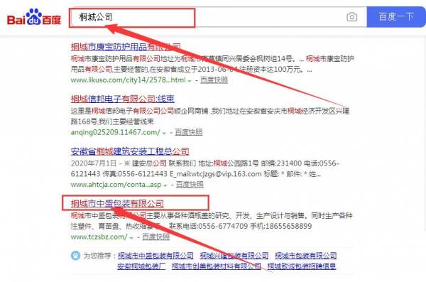 桐城市中*包裝有限公司與我司做快速排名項(xiàng)目