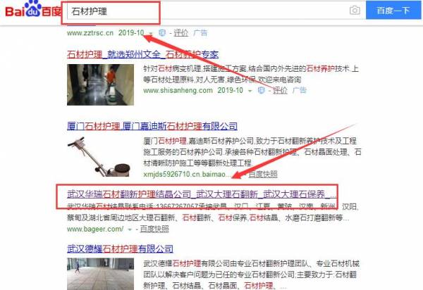 武漢華瑞石材護(hù)理有限公司選用我司企業(yè)石材護(hù)理行業(yè)的網(wǎng)站優(yōu)化產(chǎn)品,其SEO關(guān)鍵詞有 武漢石材結(jié)晶,武漢石材鏡面,武漢石材打磨,武漢石材拋光,武漢石材翻新,武漢石材翻新公司,武漢大理石翻新,武漢石材養(yǎng)護(hù),武漢大理石養(yǎng)護(hù),武漢石材護(hù)理,武漢石材清洗。其特點(diǎn)是用很合適的展示方式、展示效果、站點(diǎn)框架,把客戶及其用戶很關(guān)心的問題突出表現(xiàn);并以簡(jiǎn)潔明朗的設(shè)計(jì)風(fēng)格,清晰展現(xiàn)公司水平實(shí)力,確保一秒抓住目標(biāo)用戶眼球,給用戶留下良好的第一印象。武漢華瑞石材護(hù)理有限公司成立于2011年,是經(jīng)武漢市市場(chǎng)監(jiān)督管理局審核的有資質(zhì)的公司 。公司地址:武漢漢陽大道698號(hào)5棟2單元1203號(hào)。