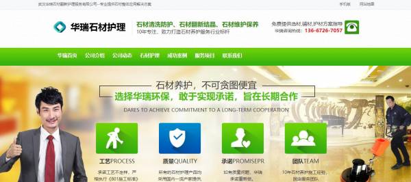 我們公司與 武漢華瑞石材護(hù)理有限公司合作中,對(duì)這個(gè)公司所經(jīng)營(yíng)的石材護(hù)理這個(gè)行業(yè)的網(wǎng)站制作積累了豐富的經(jīng)驗(yàn);同時(shí)在該行業(yè)的網(wǎng)站建設(shè)等多元化的石材養(yǎng)護(hù)領(lǐng)域中也有很多的成功的案例;但愿通過我們的合作,能夠幫助到合作伙伴在同行業(yè)中遙遙領(lǐng)先。